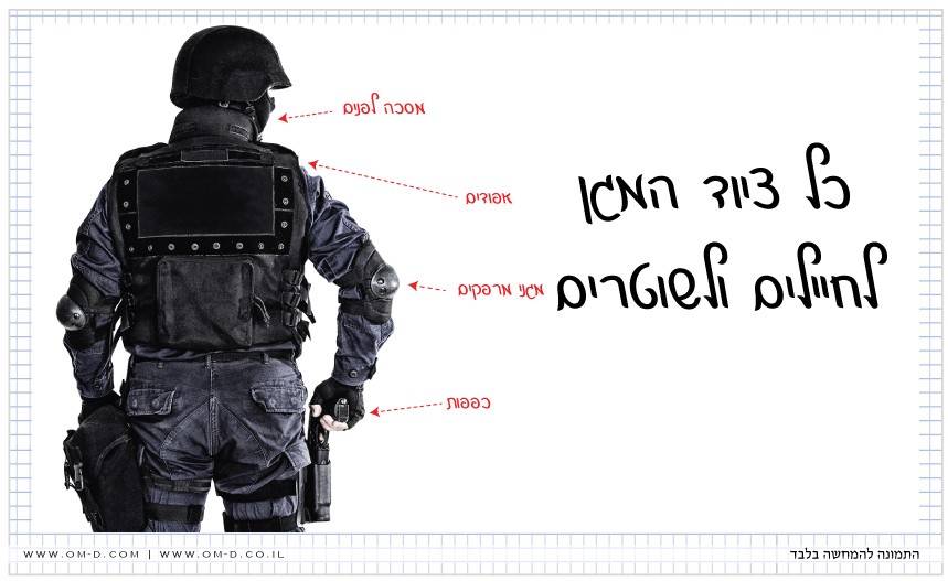 בחברה קיים מגוון רחב של ציוד למתגייס ולחייל: אפוד , אפוד לחייל ,מסיכת מעצרים, מסיכת פנים לחייל , ווסט , ווסט קרמי, צימידנים, תיקים , תיק , כיסויים, פק"לים, פלציב מסיכת פנים, מסיכת הסתערבות , מסכת סקי ועוד.